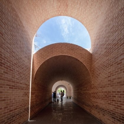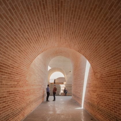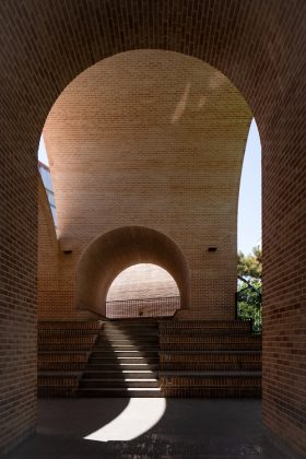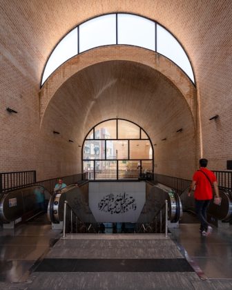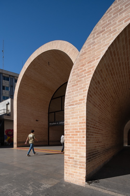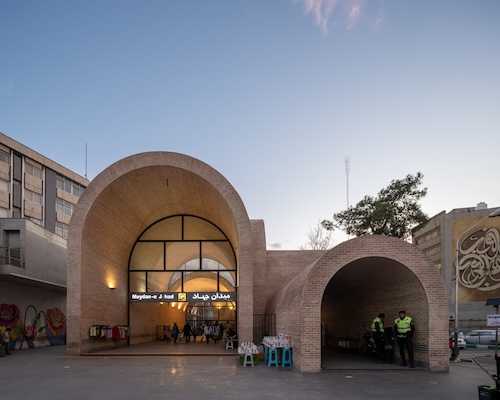 The Jahad Metro Plaza is a formerly dilapidated metro station which was transformed into a vibrant urban node for pedestrians in Tehran by KA Architecture Studio. The station entrance was transformed into a plaza encouraging encounters and events, with the wide façade providing a welcoming space for public interaction, informal commerce and urban life. Comprised of several barrel-like constructions, the metro entrance features several arched windows, allowing streams of light into the cool, shady spaces. The project championed the use of local handmade brick, strengthening its connection to Iran’s historic architectural heritage.