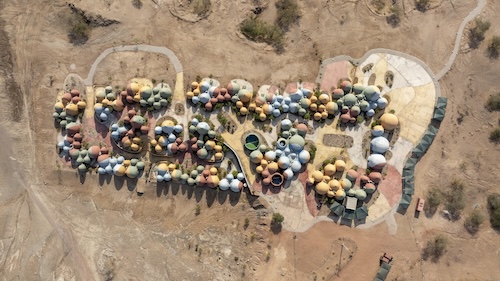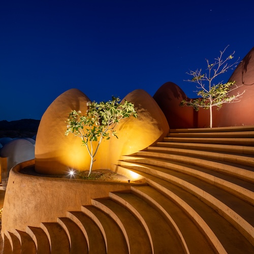 The domes are based on the SuperAdobe building technique pioneered by Iranian-American architect Nader Khalili (winner of the 2004 Aga Khan Award for Architecture.) Their thick walls cool the spaces and offer refuge from the heat.
