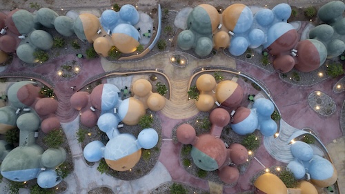 The Majara Residence is a gateless complex made up of 200 domes of varying sizes that offer comfortable tourist accommodation for up to 75 visitors, 10 art/design residencies, as well as eateries, a public library, an art/craft retail space, and a place of worship.