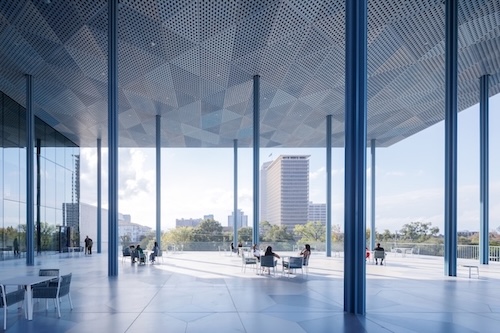 The Center has a 150,000-square-foot, five-story building designed by London-based Farshid Moussavi Architecture (FMA), and landscaped gardens designed by Nelson Byrd Woltz Landscape Architects that have tree-lined promenades, shaded terraces and fountains.