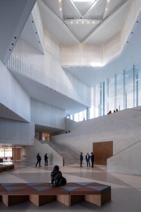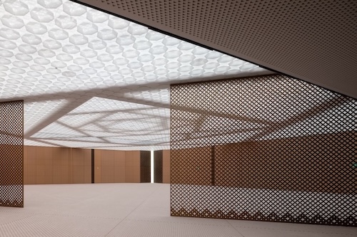 The Center’s contemporary design took inspiration from the rich Persian architectural heritage of eivan [verandas], ceramic mosaics and mashrabiya latticed stone screens that temper light. FMA’S founder, Moussavi, is an Iranian-born and internationally acclaimed architect who is also a Professor in Practice of Architecture at the Harvard University Graduate School of Design.