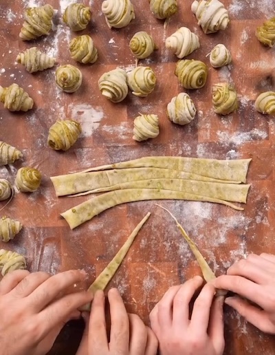• Place on parchment-lined baking sheet, tip-side down.