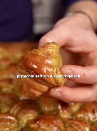 This recipe offers a vegan take on the classic Jewish rugelach, infused with the elegance of Persian flavors. Each tender, bite-sized pastry is filled with sweet pistachio and finished with a saffron-rose glaze, creating a fragrant, melt-in-your-mouth treat that feels both nostalgic and new.